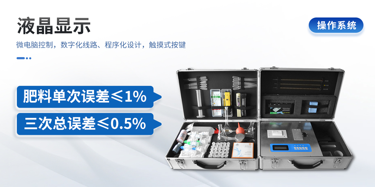 | 肥料養(yǎng)分專用檢測儀功能全:測試項目國內(nèi)外*全(各類藥劑均可選購)。 | 配套齊全,該儀器集藥、器、儀為一體,攜帶方便,相當于一個小型實驗室,用戶只需提供蒸餾水即可在要求時間內(nèi)完成全部操作。適于農(nóng)業(yè)服務(wù)部門或農(nóng)資經(jīng)銷商鑒別肥料真假、肥料廠商肥料生產(chǎn)中控、農(nóng)資質(zhì)檢部門進行農(nóng)資打假,規(guī)范農(nóng)資市場。 | 性能可靠:工作穩(wěn)定性優(yōu)于國家標準JJG179-90指標的10倍以上,重復(fù)性達到光柵型分光光度計指標水平。 |