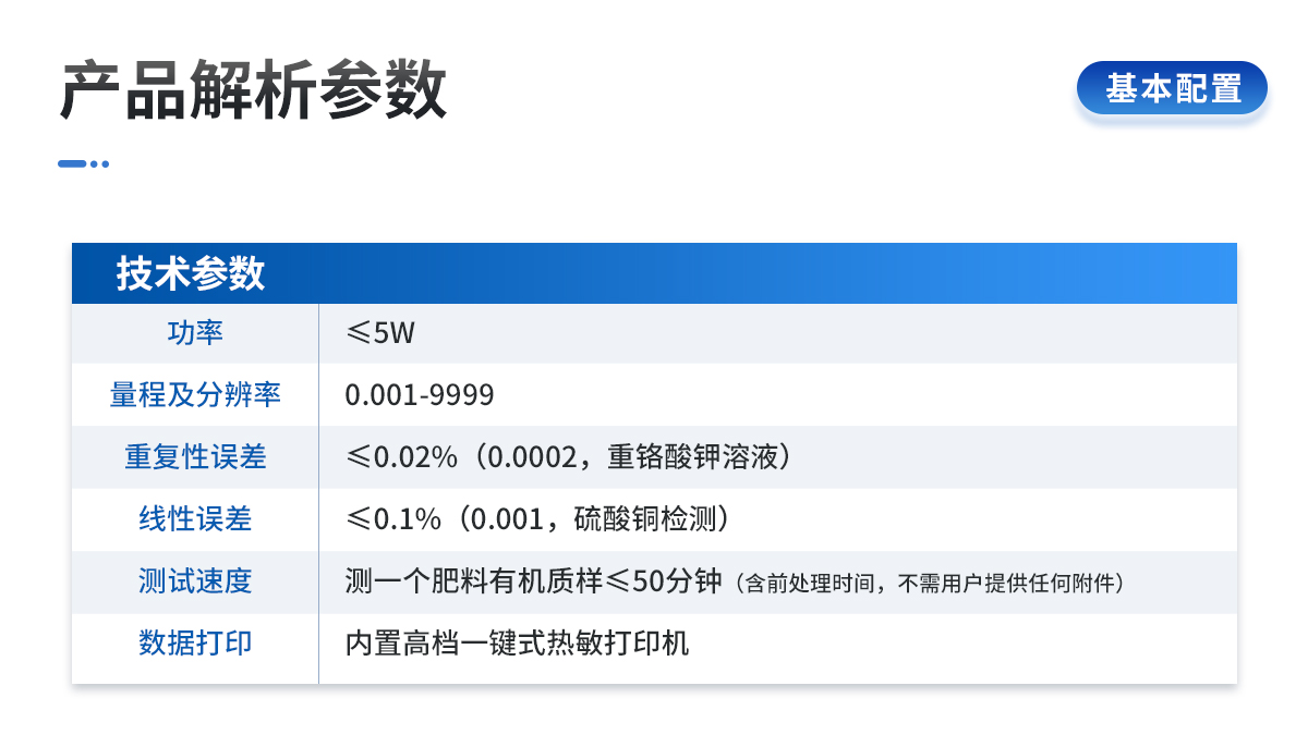 | 可檢測化肥、有機肥(含葉面肥、水溶肥、噴施肥等)、植株中的有機質(zhì)、腐殖酸等。 | 安卓智能操作系統(tǒng),采用更加**和人性化操作,儀器標配wifi聯(lián)網(wǎng)上傳、4G聯(lián)網(wǎng)傳輸、GPRS無線遠傳,快速上傳數(shù)據(jù)。 | 采用精密旋轉(zhuǎn)比色池設(shè)計,光源一致性更加**保證檢測精度。一次性可快速檢測12個樣品,極大提升檢測效率,降低檢測成本。 | 儀器配有數(shù)據(jù)接收平臺,無需數(shù)據(jù)線,數(shù)據(jù)可直接局域網(wǎng)和互聯(lián)網(wǎng)無線上傳,方便進行數(shù)據(jù)管理和數(shù)據(jù)長期分析。 | 儀器內(nèi)置新一代高速熱敏打印機,檢測完成可自動打印檢測報告和二維碼。 | 高靈敏7寸電容觸摸屏,高清晰高交互顯示,大程度降低傳統(tǒng)儀器的繁瑣操作和失誤。 | 每個通道均配置四波長冷光源,所有光源實現(xiàn)恒流穩(wěn)壓,保證波長穩(wěn)定。 硅半導(dǎo)體作為信號接收系統(tǒng),壽命長達10萬小時級別。重現(xiàn)性好,準確度高。 |