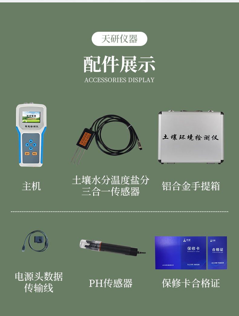 | 儀器可加配4G聯(lián)網(wǎng)功能和數(shù)據(jù)管理平臺(tái),將本機(jī)存儲(chǔ)的歷史數(shù)據(jù)無線上傳到智慧云農(nóng)業(yè)平臺(tái),方便用戶進(jìn)行數(shù)據(jù)管理和長期分析。 | 可選擇記錄模式:手動(dòng)記錄、自動(dòng)記錄,自動(dòng)記錄可設(shè)置記錄時(shí)間間隔。 | 采用一體化結(jié)構(gòu)設(shè)計(jì),集液晶顯示儀表+傳感器+便攜手提箱合成在一個(gè)便攜式手提箱內(nèi),本機(jī)體積小巧,操作簡單,性能可靠,野外攜帶極為方便。 | 大屏幕中文液晶顯示,可實(shí)時(shí)顯示溫度值、水分值、組數(shù)、低電壓示警,存儲(chǔ)數(shù)據(jù)等,便于野外攜帶作業(yè)。 | 儀表可設(shè)置多種土質(zhì)配方,便于不同土質(zhì)的水分測(cè)量。 | 能存儲(chǔ)指定各個(gè)點(diǎn)的土壤溫度值、水分值,上位機(jī)軟件功能強(qiáng)大,隨時(shí)可以通過USB接口將記錄中的數(shù)據(jù)導(dǎo)出到計(jì)算機(jī)上,并可以存儲(chǔ)為EXCE表格文件,生成數(shù)據(jù)曲線,以供其它分析軟件進(jìn)一步進(jìn)行數(shù)據(jù)處理。 |